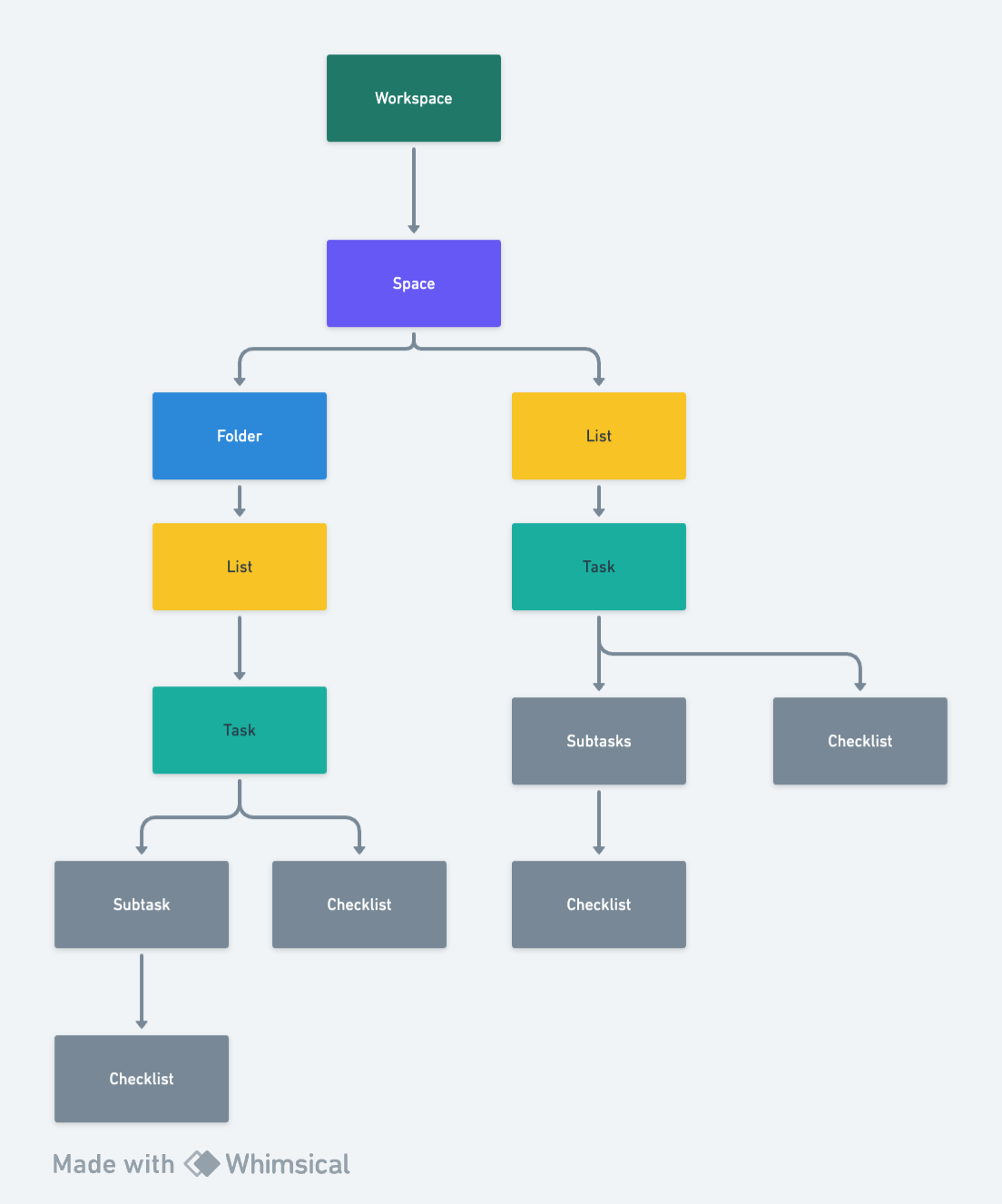 La hiérarchie de Clickup ou la vue verticale est la suivante :